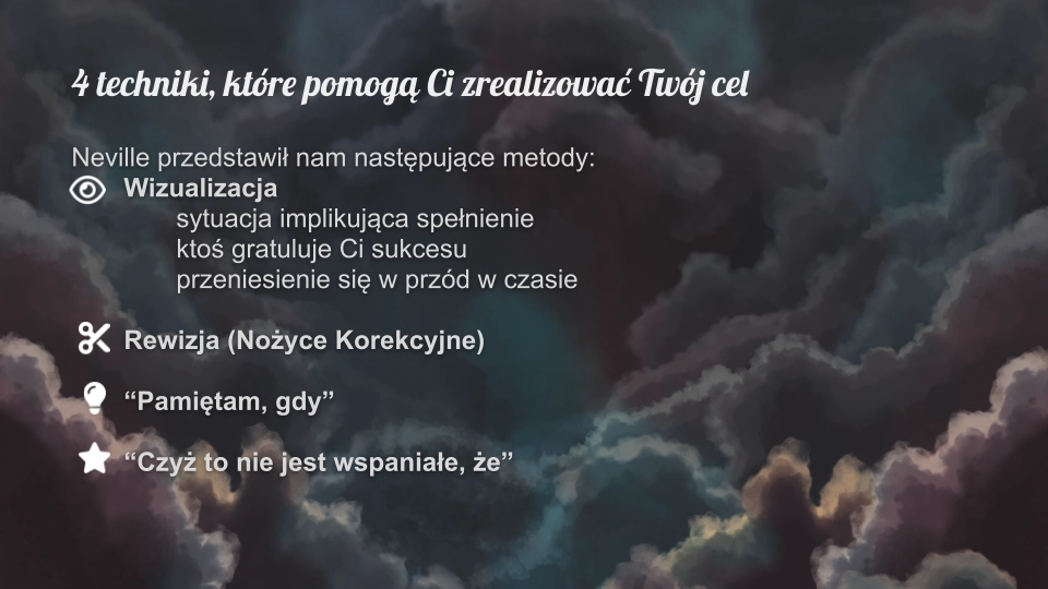 - Osiągnięcia materialnego sukcesu, stosując techniki Neville'a Goddarda,