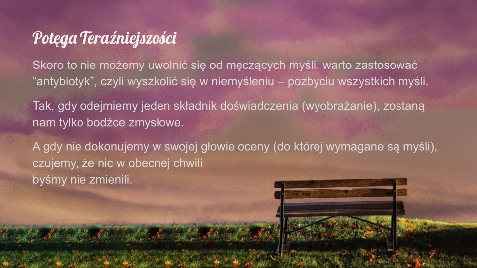 - Odzyskania władzy nad swoim umysłem i delektowania się upragnionym spokojem,