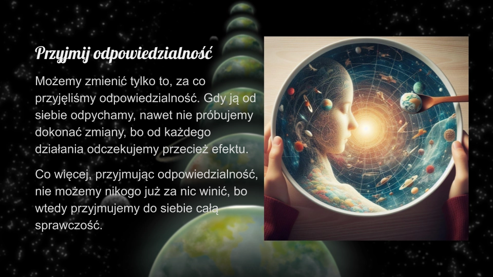 - Wykształcenia korzystnego obrazu własnej osoby i przyciągania do siebie tego, co najlepsze,