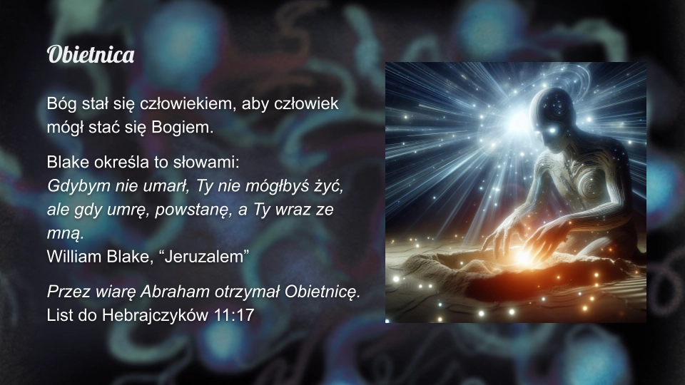 - Otworzyć się na duchowe zrozumienie Obietnicy danej przez Boga dla człowieka.